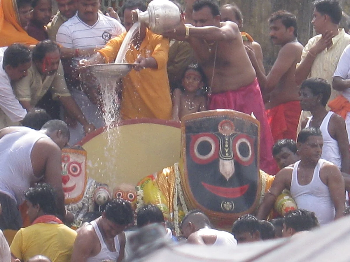 - Snana Yatra (June): Deities bathed with 108 pitchers of holy water from Sunakua well; they fall ill afterward and are hidden for 15 days—Anavasara.