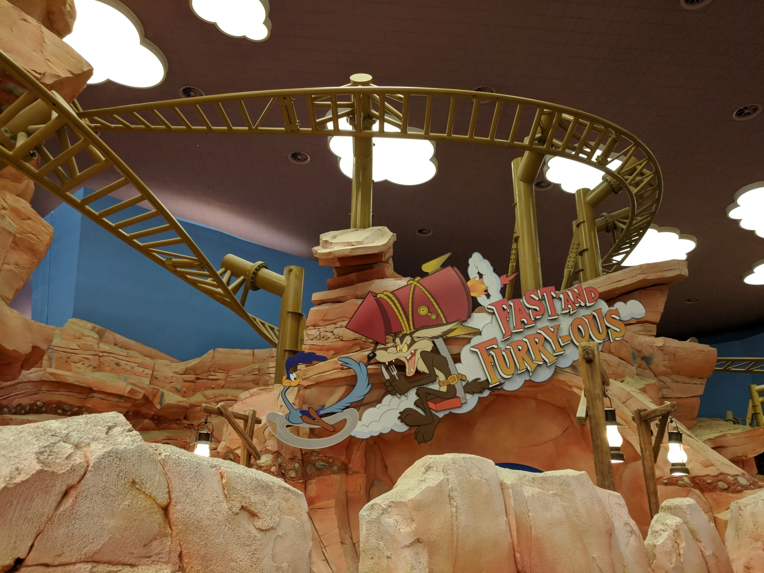 - Fast and Furry-ous is a high-speed coaster inspired by Wile E. Coyote’s endless chase for the Road Runner.